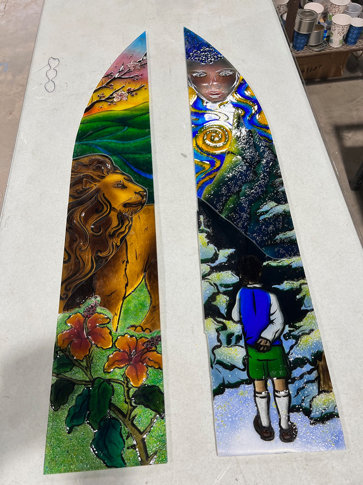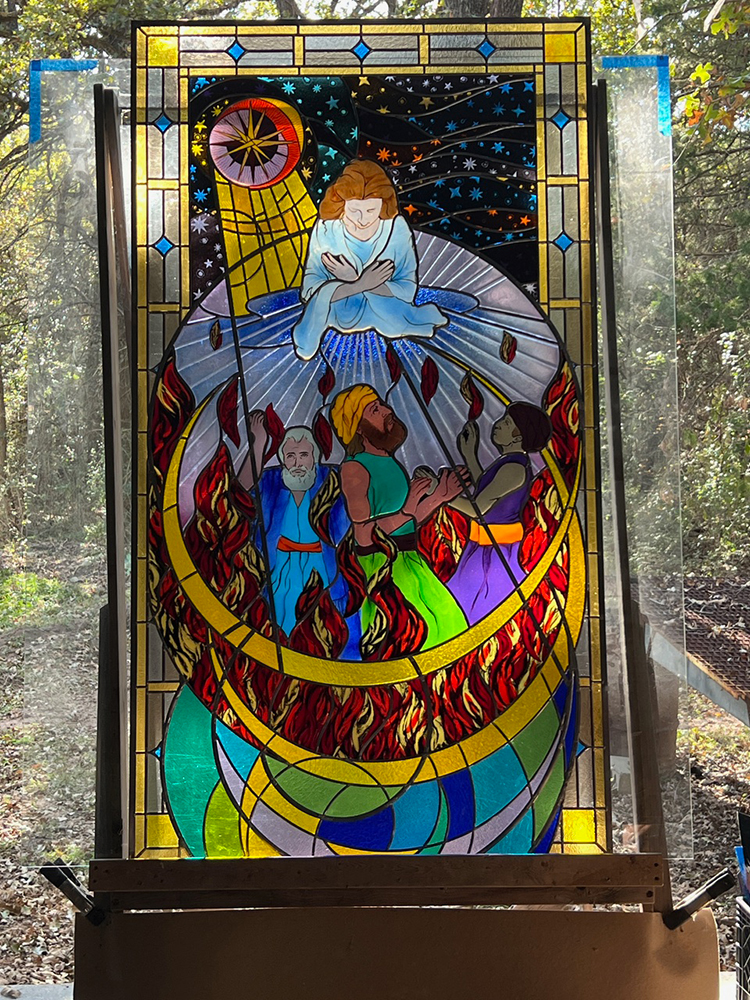President Baker invited art students to submit proposals for the chapel’s stained glass windows. Three teams of students presented exceptional designs. Under the guidance of Professor of Art and Design Tim Timmerman, these talented students traveled to Waco, Texas, where they collaborated with professional stained glass artist Bryant Stanton of Stanton Studios. After refining the designs, Stanton Studios began the production of these stunning works of art.